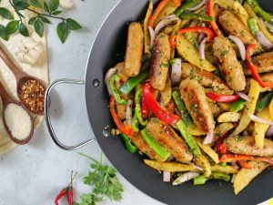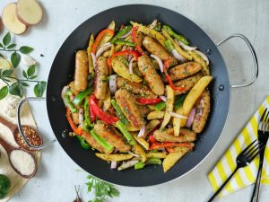 -Red bell pepper,Shimla mirch,pyaz,fried aloo aur fried kababs dal ker ache tarhan mix ker lein.