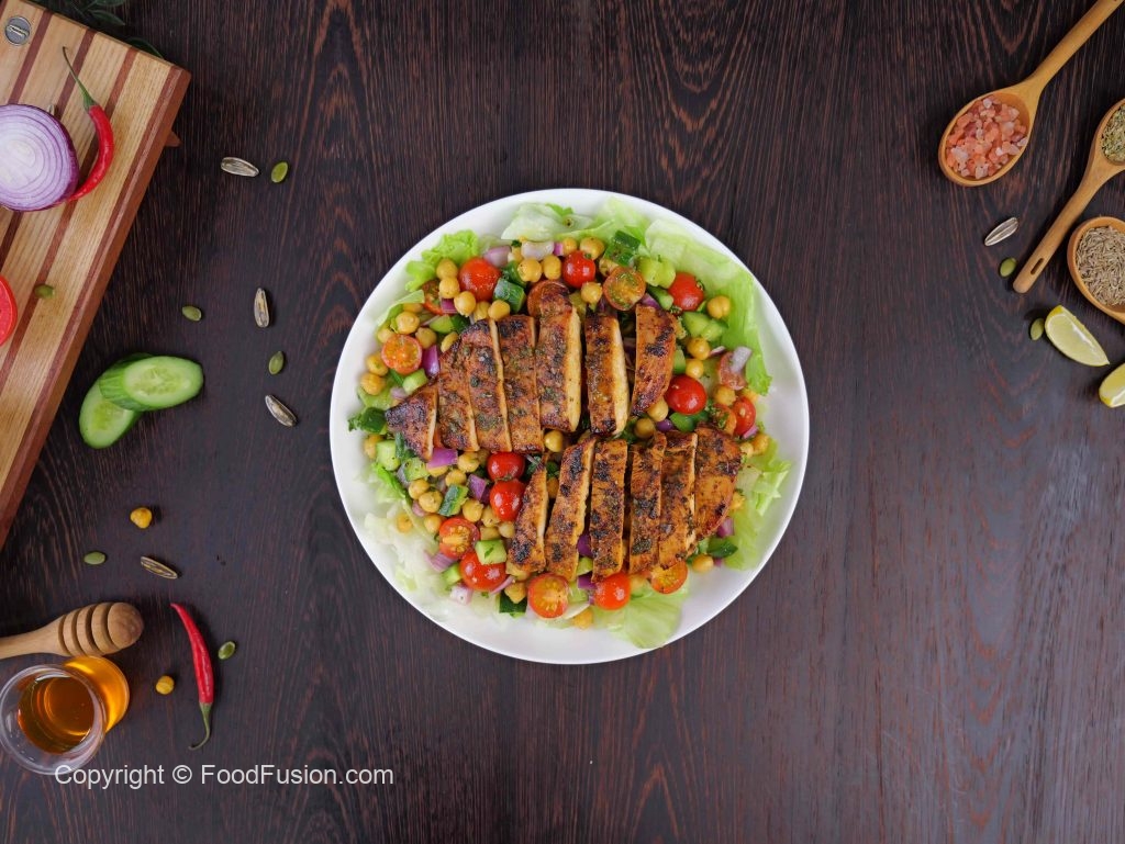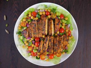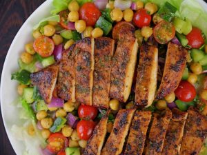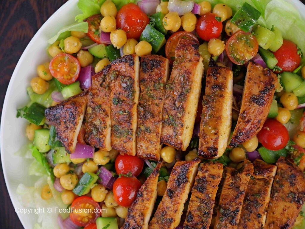 Healthy Protein Salad – Lemon Herb Grilled Chicken & Chickpea Salad