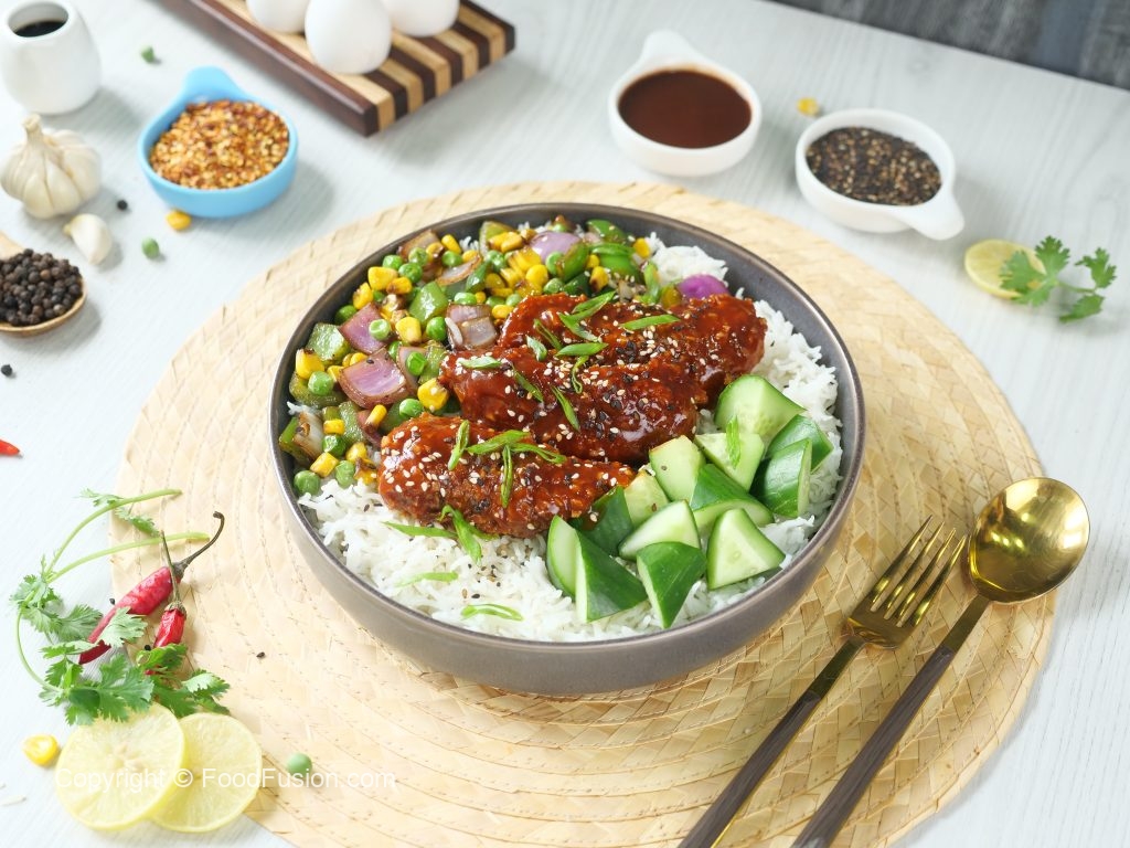 Sweet meets spicy in this Honey Sriracha Crispy Chicken Rice Bowl. A perfect blend of crispy chicken, tender rice, and a kick of fiery flavors. Dive into the deliciousness! #happycookingtoyou #foodfusion #araywahh