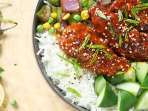 Honey Sriracha Crispy Chicken Rice Bowl
