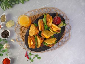 -On buns,add & spread prepared sauce, place salad leaf,crispy chicken,cheese slice,prepared sauce & serve (makes 14).