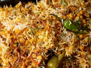 Fried pyaz,boiled chawal,fried pyaz,hara dhania,podina,hari mirchein,zarda ka rang,kewra water aur ghee dal ker dhak dein aur halki ancch per 8-10 minutes kliya dum per rakh dein.