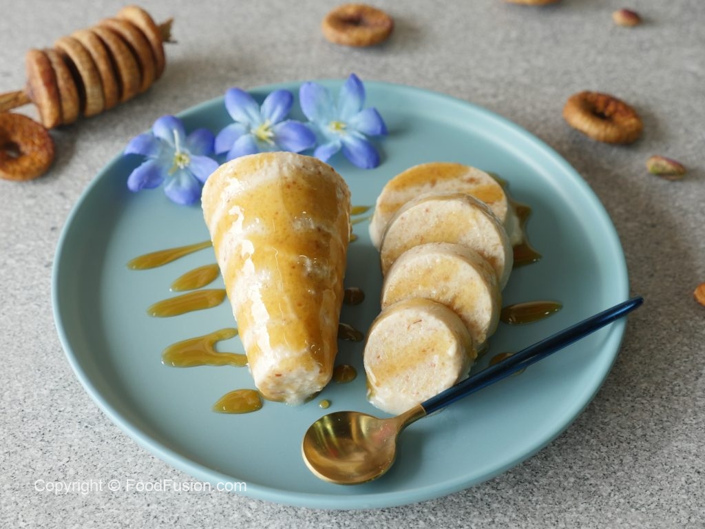 Drizzle caramel syrup and Fig kulfi is ready to serve.