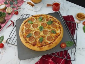 -Sprinkle red chilli crushed,garlic powder,dried oregano & grease the sides with cooking oil (makes 2).