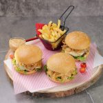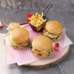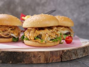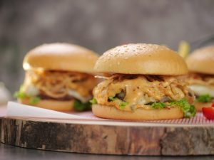 -On burger bun,add & spread jalapeno burger sauce,lettuce leaves,cheese patty,onion rings,jalapeno burger sauce & top with another bun to make a burger (makes 5).