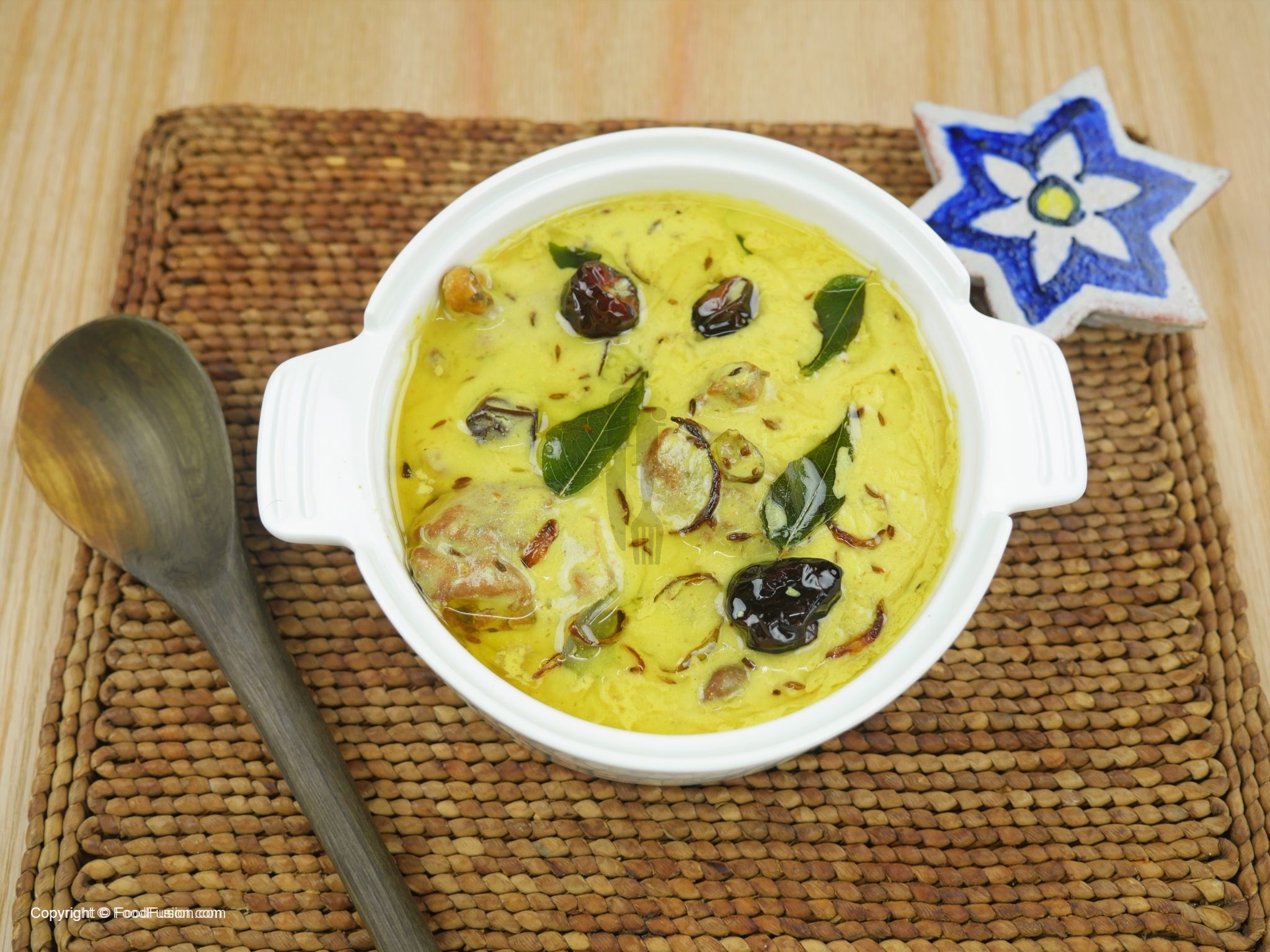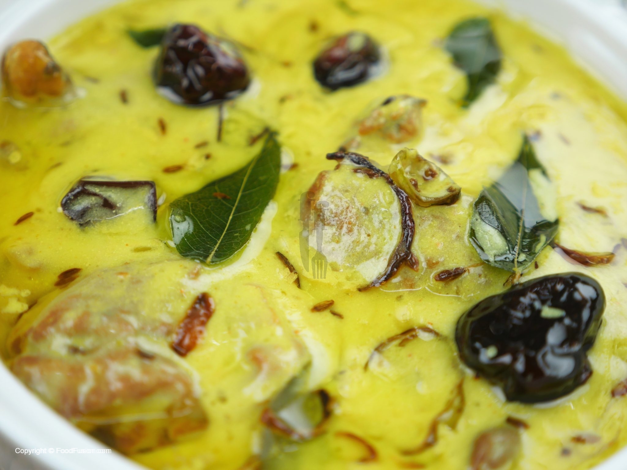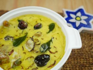Serve the kadhi hot with steamed rice.