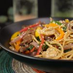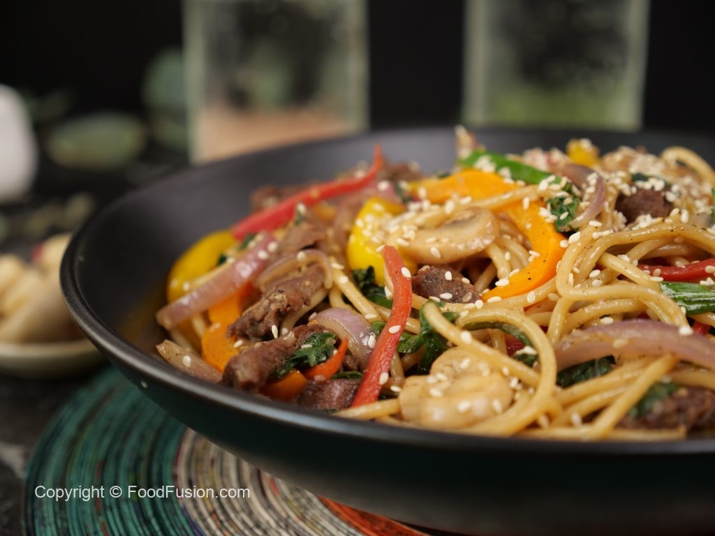 Add beef strips,wilted spinach & mix well.
