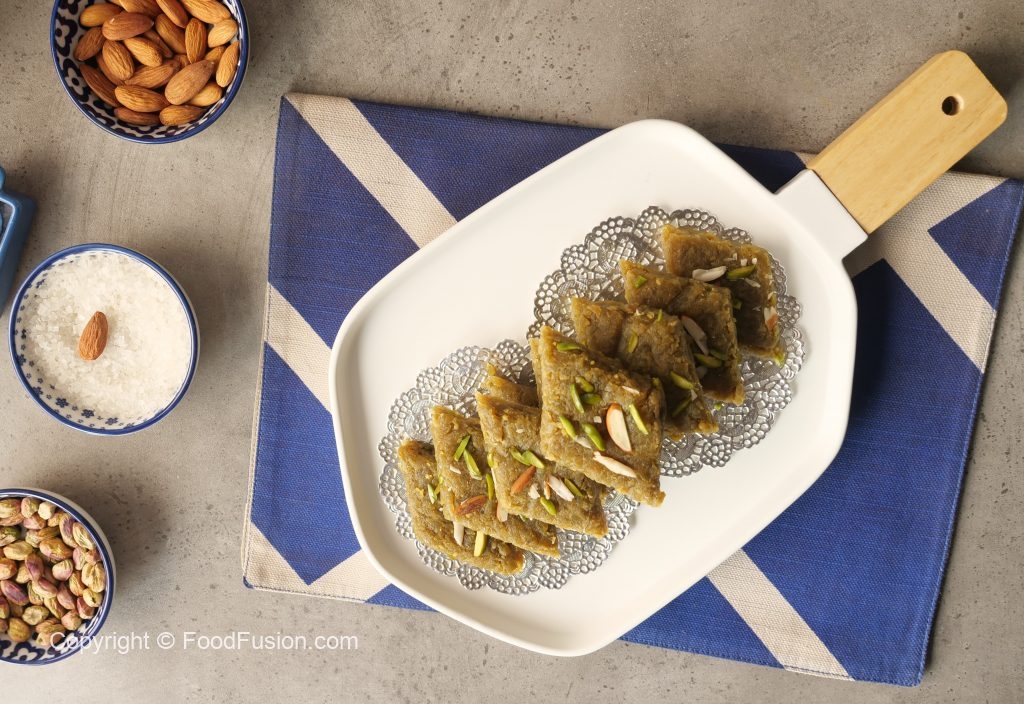 Mithai ki consistency check karne k liye aik chota si quantity len or ball banayen. Agar ball smooth banay to mithai ready hai.