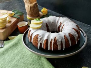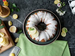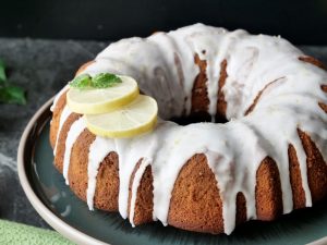 Drizzle prepared lemon glaze over top,letting it drip down the sides.