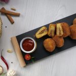 -Sprinkle chaat masala & serve with tomato ketchup!