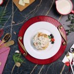 -Add cooked chicken,creamy alfredo sauce,fresh parsley,red chilli crushed & serve!