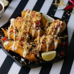 -Sprinkle chaat masala & serve with ketchup or chilli garlic sauce.