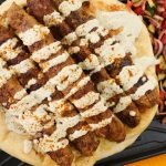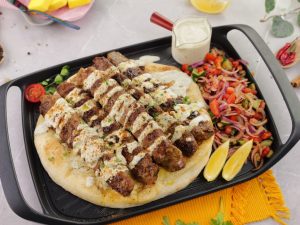 -On toasted naan,place kababs,drizzle prepared sauce & sprinkle chaat masala.