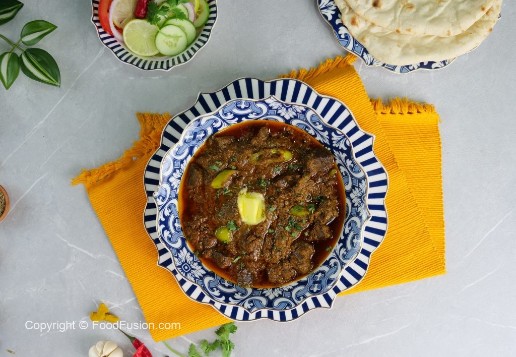 -Bowl mein kaleji,pani,sirka aur adrak lehsan paste dal ker ache tarhan mix karein aur dhak ker 30 minutes kliya chor dein phir pani sa ache tarhan dho lein aur strain ker ka side per rakh dein.