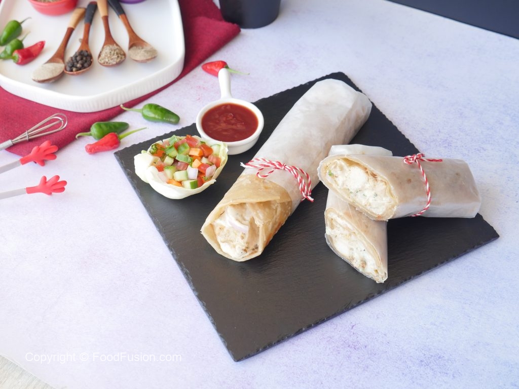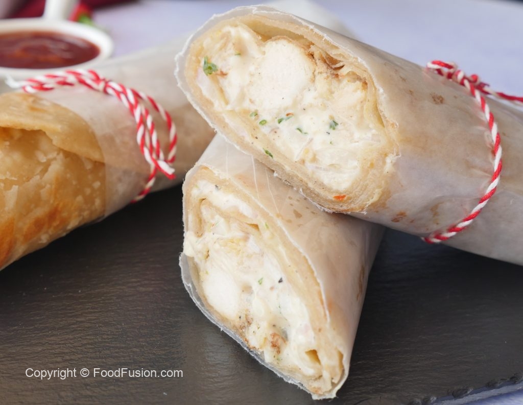 Paratha per tayyar creamy white sauce,chicken malai boti,pyaz aur creamy white sauce dal dein aur roll ki tarhan fold karein aur butter paper mein wrap ker ka serve karein! (Makes 4).