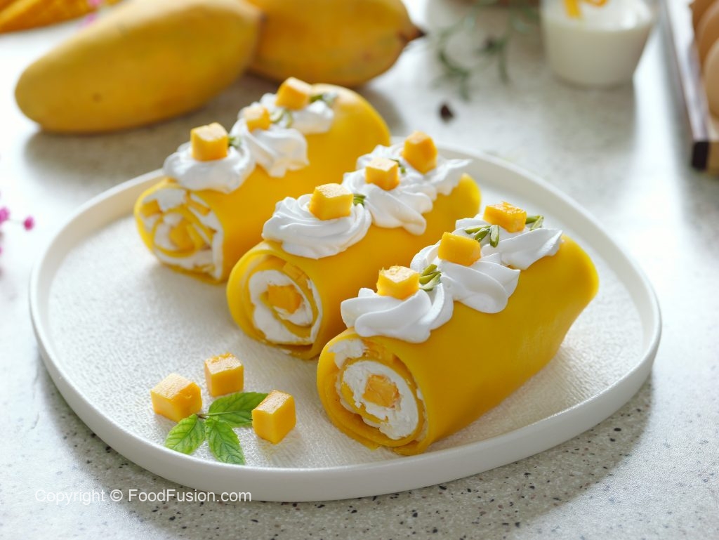 Soft crepes filled with cream and mango chunks – every bite melts in your mouth and makes you say, aray wahh! #happycookingtoyou #foodfusion #araywahh #mango