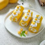 -Place mango chunks & roll up to make a swiss roll.