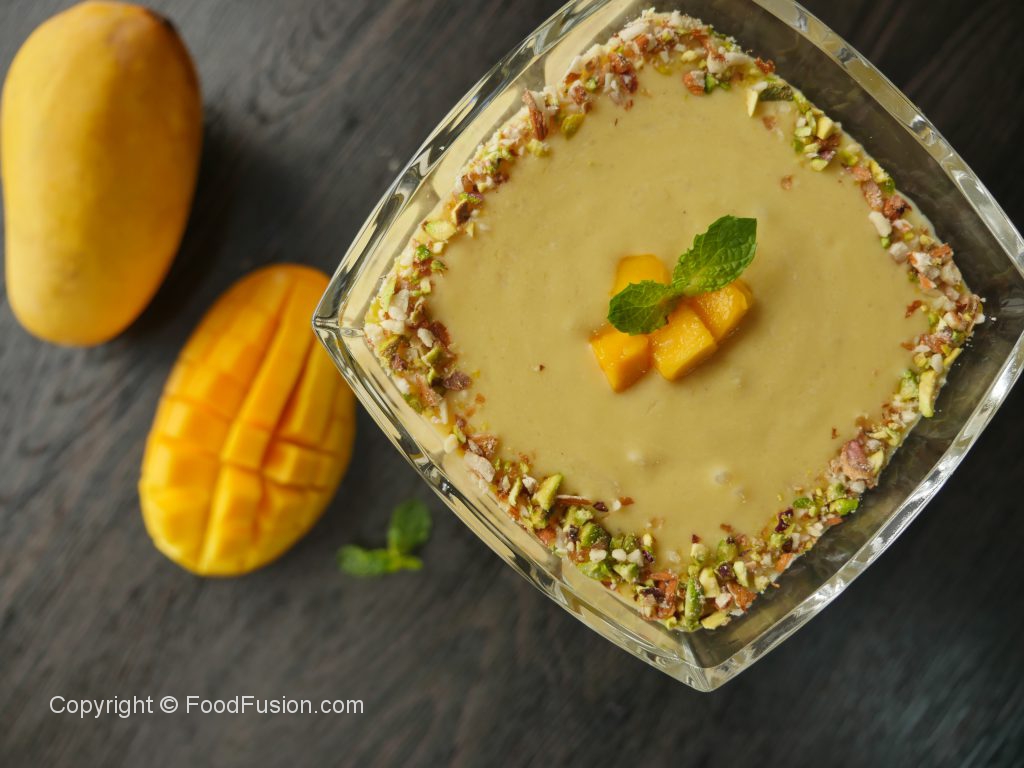 Mango cubes aur dry nuts sa garnish karein aur thanda hunay tak refrigerate ker lein