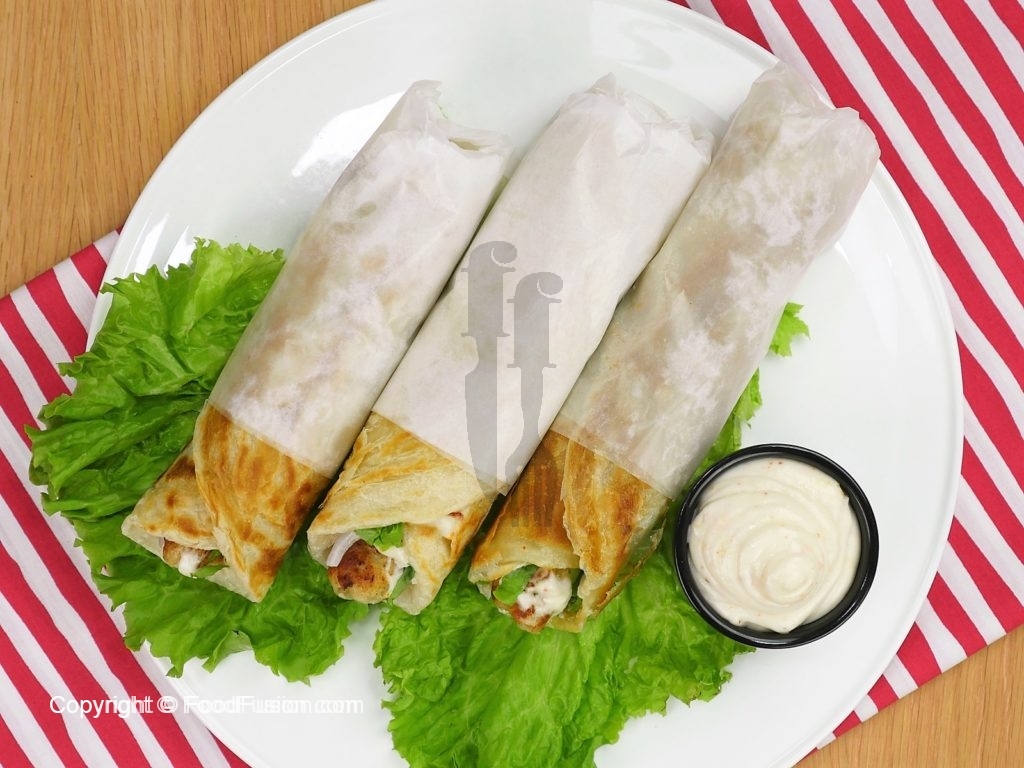 Place dawn bread paratha,add mayo garlic sauce,chicken cheese seekh kabab,onion slices,salad leaves and mayo garlic sauce,warp and serve.