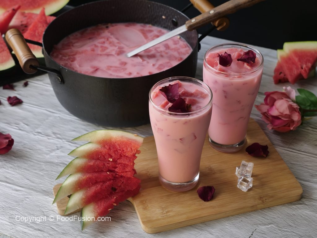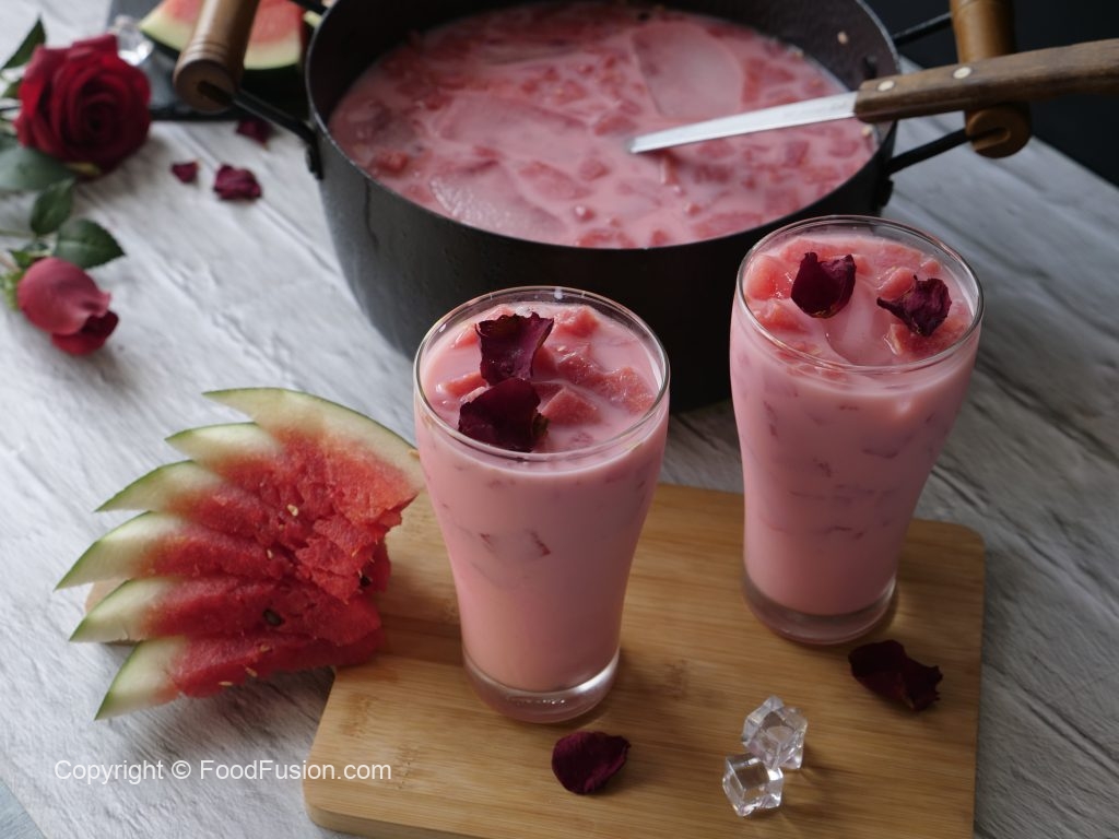 A famous street style Watermelon Drink, known as Mohabbat ka Sharbat. So quickly make this sharbat and spread some love with people around you. #FoodFusion #HappyCookingToYou #FoodFusion #SummerDrinks