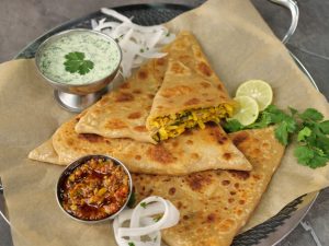 -Heat griddle & fry paratha on medium flame from both sides with clarified butter (makes 5).