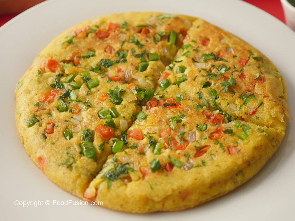 Shimla mirch,tamatar,pyaz aur hara dhania dal ker gently press karein aur flip ker lein.