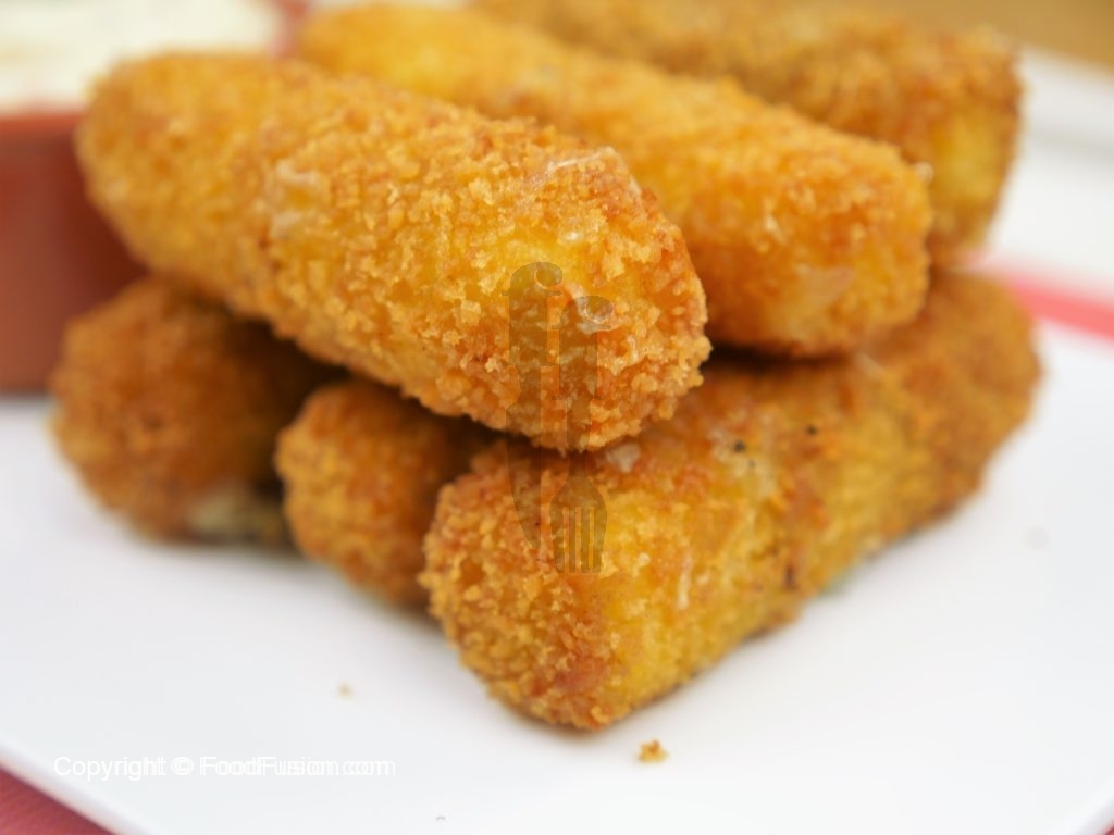 Mozzarella cheese sticks tayyar han,sour cream dip k saath serve karein.