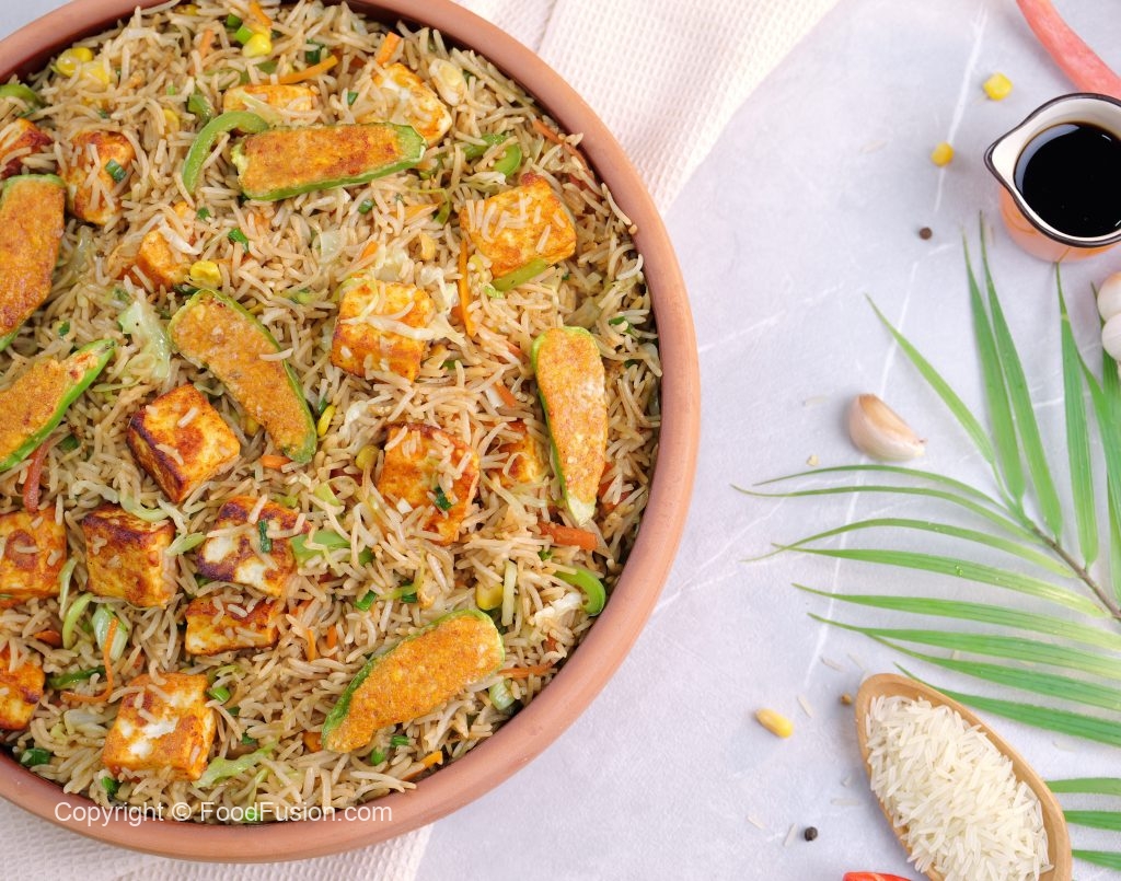 -In a frying pan,heat cooking oil & fry cheese cubes on medium flame from all sides until golden brown & set aside.