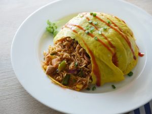 -Take two omelette,roll out & cut into thin strips & set aside.