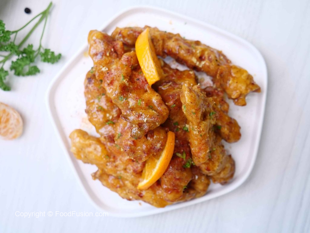 -Karahi mein lemon & orange juice (1 Cup),brown sugar,remaining spice mix (1 tbs),lemon zest (1/4 tsp),orange zest (1 tsp) aur cornflour dal ker ache tarhan whisk ker lein.