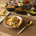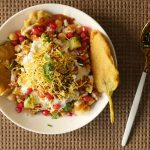 Platter mein palak pakora,hari mong daal,chanay,aloo,pyaz,tamatar,dahi,tayyar hari chutney,tayyar khatti chutney,nimco sev,anaar,lal mirch crushed,chaat masala aur hara dhania dal ker serve karein.
