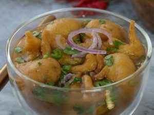 -Add onion rings,green chilli,fresh coriander,mix gently & serve!