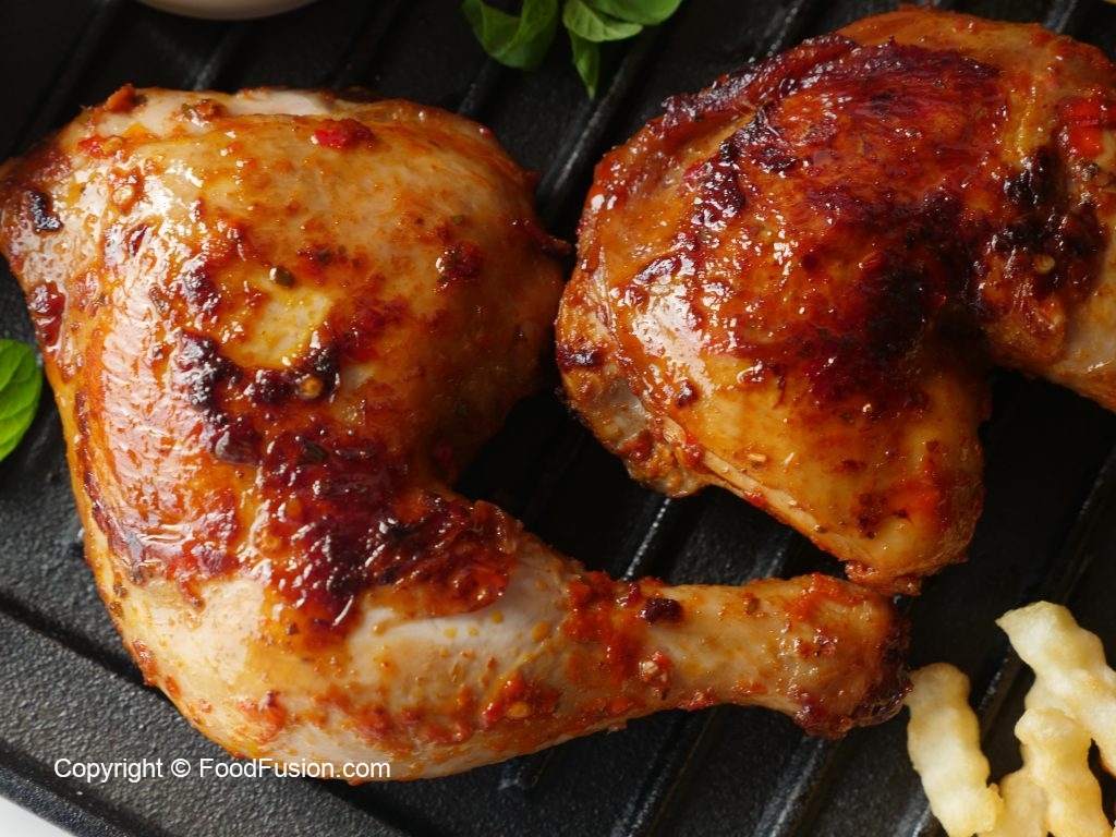 Grease frying pan with cooking oil,place marinated chicken pieces and cook on low flame from both sides until done (approx. 15-20 minutes) and basting with remaining marinade,cover and turn sides in between.