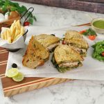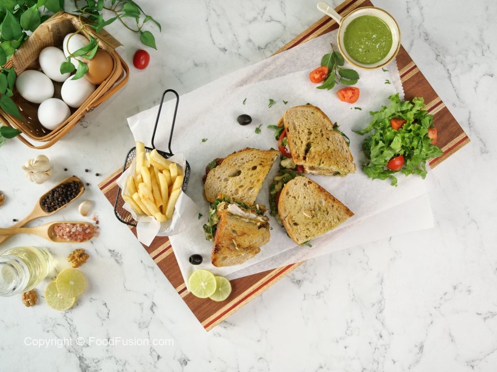 -Serve with potato fries,Pesto sauce & salad.