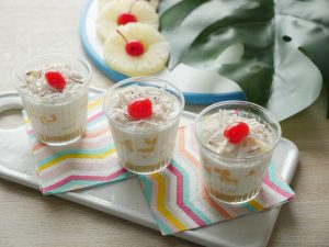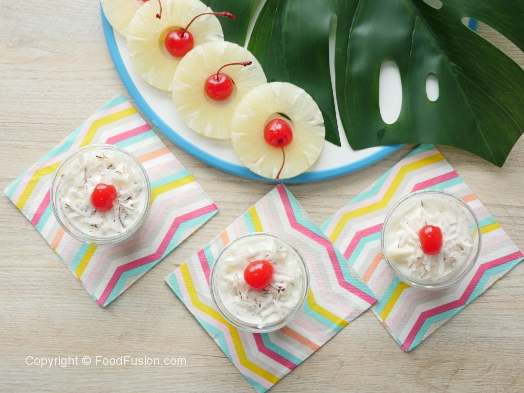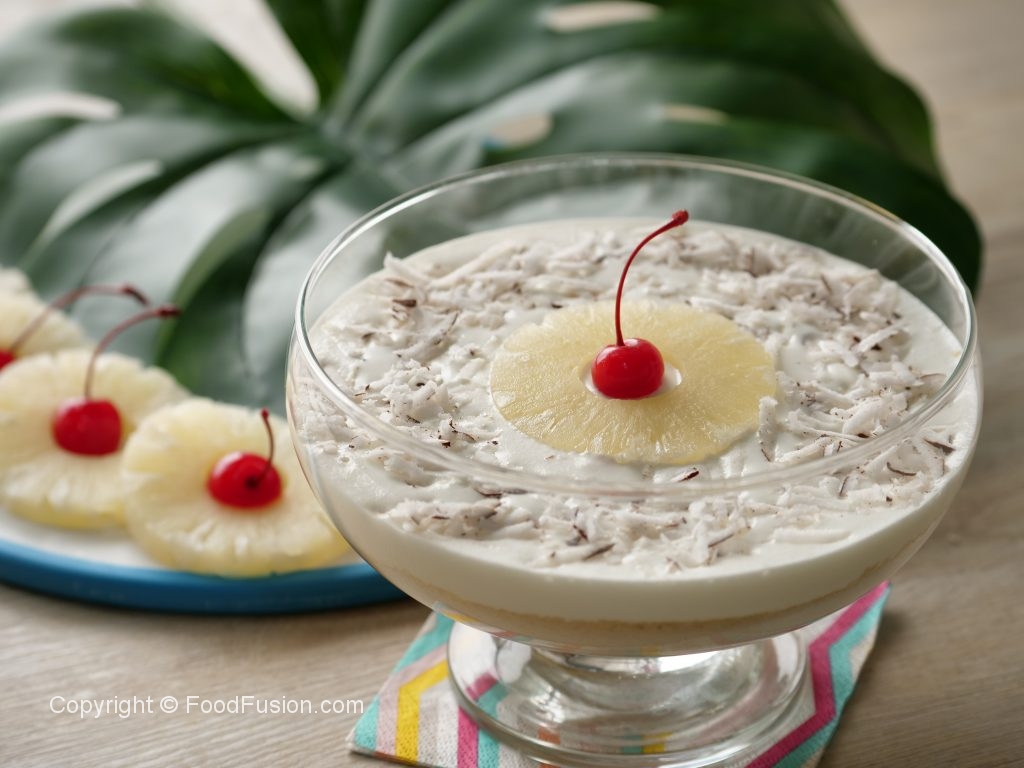 Fresh coconut sprinkle ker ka cherry rakh dein.