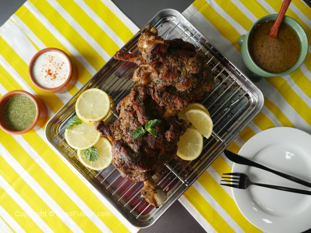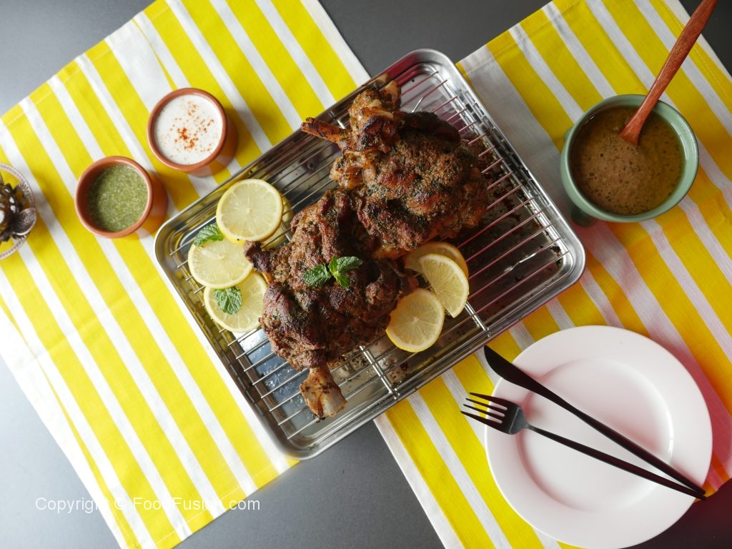 Grill mutton leg in preheated oven at 200 C  for 10-12 minutes or until golden brown color appears.
