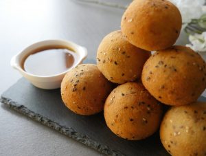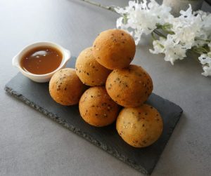 In bowl breadcrumbs,black sesame seeds and mix well.
