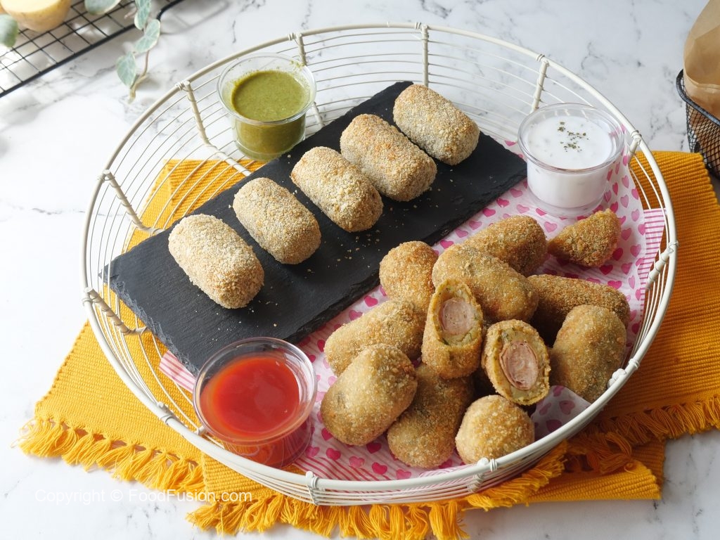 -Now place fried sausage,cover properly with potato mixture & make croquettes of equal sizes.