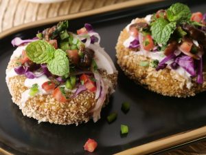 -Fill the cone with prepared potato filling (1 tbs) & add 1 tsp of prepared green chutney.