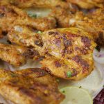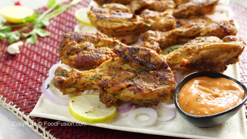 -In a frying pan,add cooking oil & cook marinated chicken on medium flame from all sides until brown (3-4 minutes),cover & cook on low flame until done (10-12 minutes).