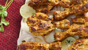 -Chicken drumsticks mein vertically deep cut laga lein aur butterfly ki tarhan open ker lein & side per rakh dein.