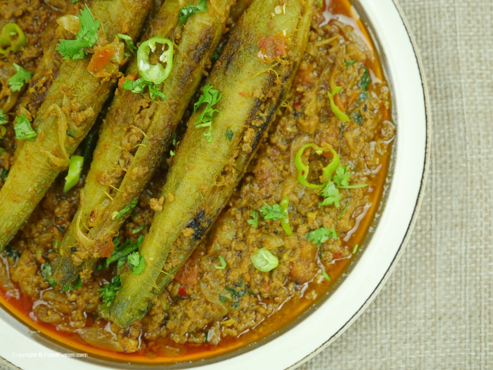 Pani shamil ker k mix karein,fried qeema bhara karele dal dein,dhak ker halki anchh per 5-6 mins kliya paka lein.