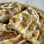 Take out from pizza pan & drizzle prepared ranch sauce then cut into slices & serve!