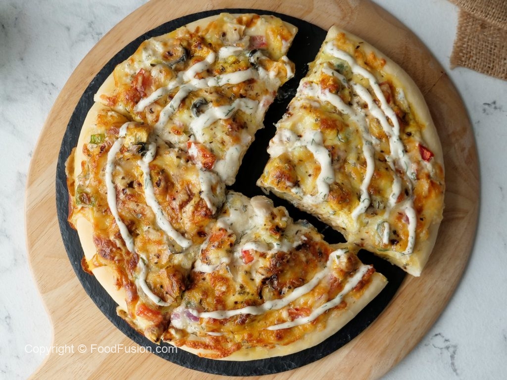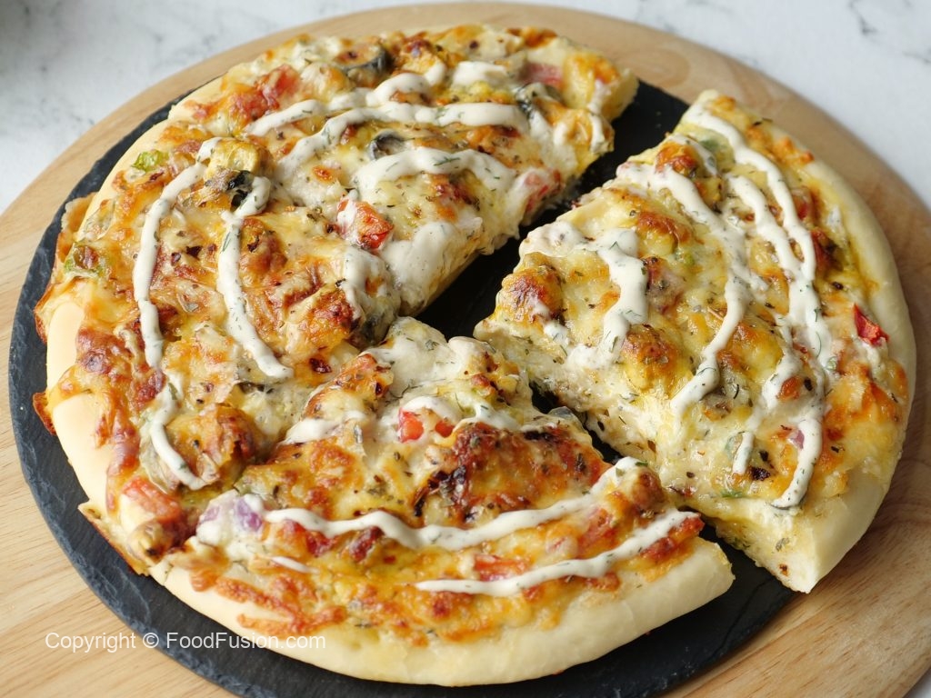Ranch Pizza recipe with the perfect ranch sauce all homemade with restaurant quality taste. #HappyCookingToYou #FoodFusion #Pizza #Recipe