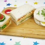 On bread slice,add & spread chicken mixture,boiled egg and top with bread slice & serve.