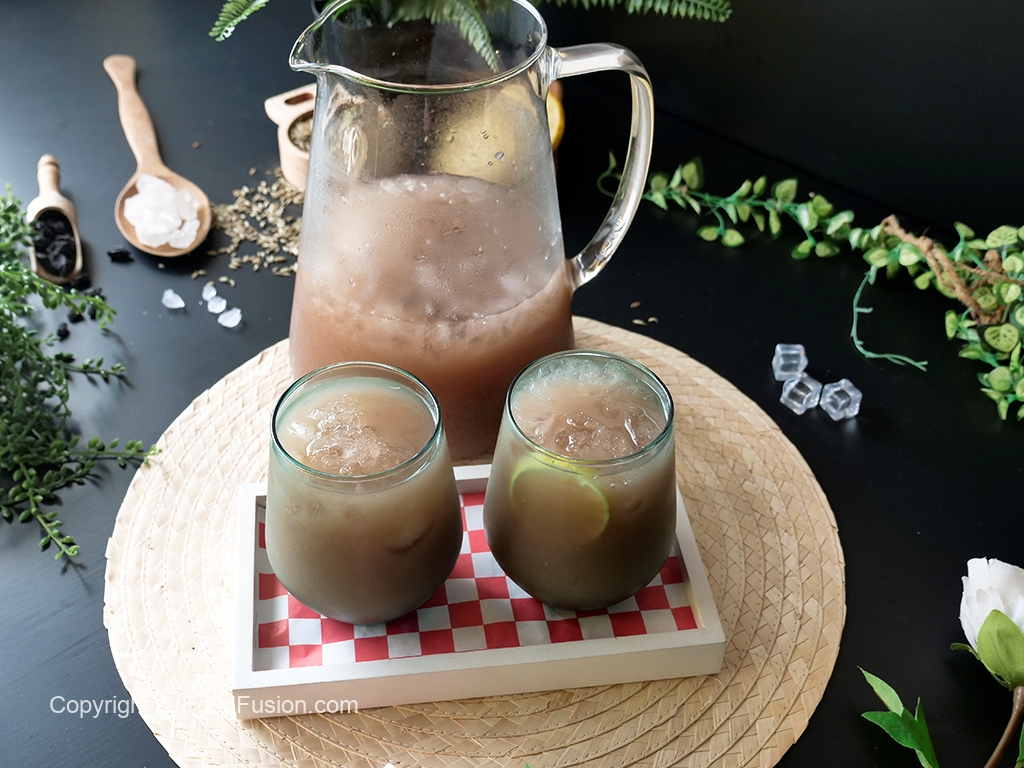 In a jug,add crushed ice,saunf sharbat,lemon juice,stir & serve!