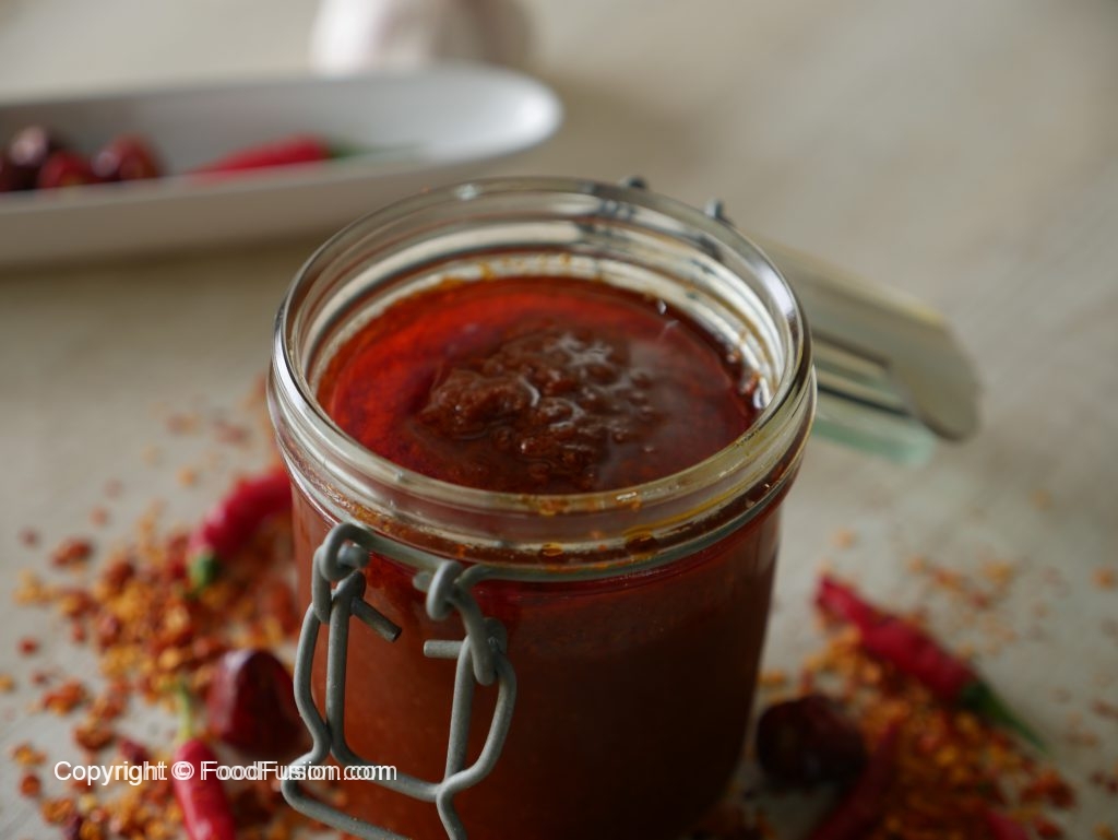 Now add prepared red chili paste,mix well and cook until oil separates (3-4 minutes) & set aside.