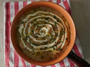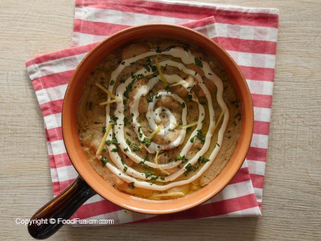 Garnish with cream,ginger,fresh coriander & serve.