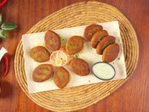 -Take 50g of kabab mixture, shape it like a leaf. (Makes 28-30)