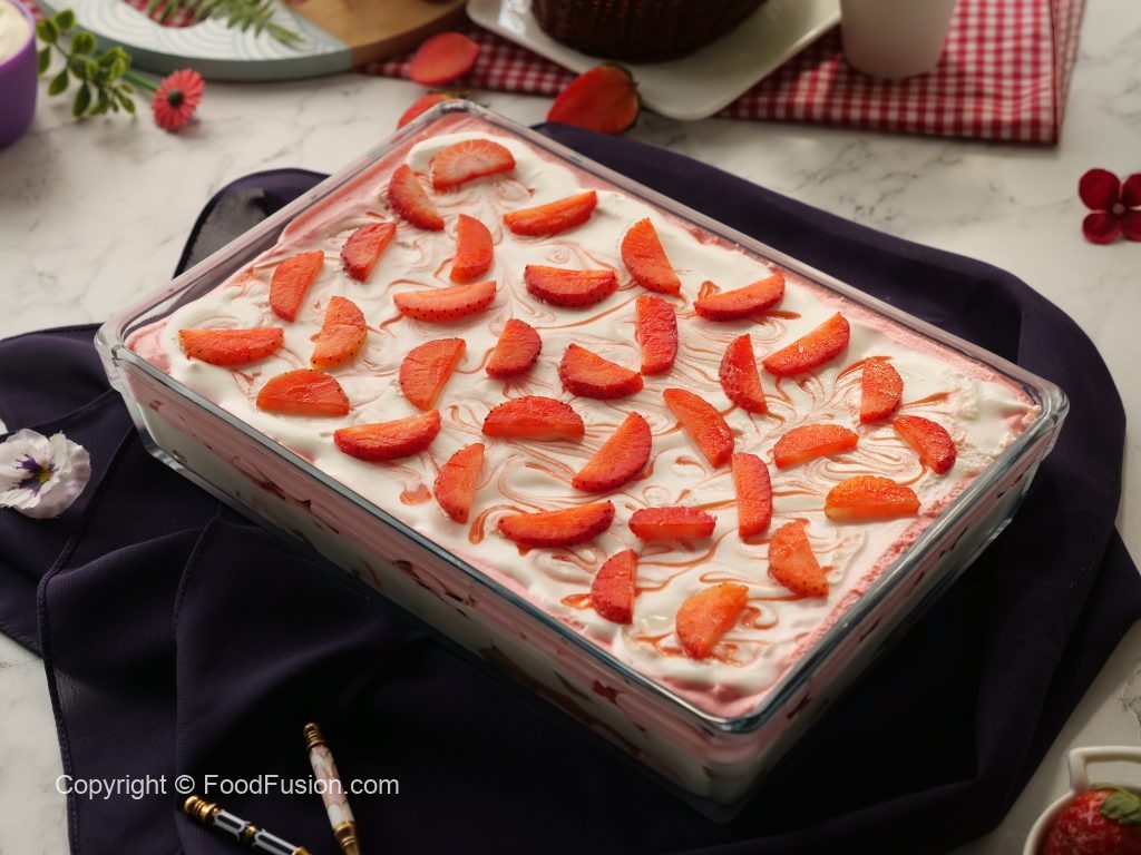 An amazing dessert with strawberry. This strawberry Icebox Cake Dessert will surely become everyone’s favourite this strawberry season. #HappyCookingToYou #OlpersCream #FoodFusion